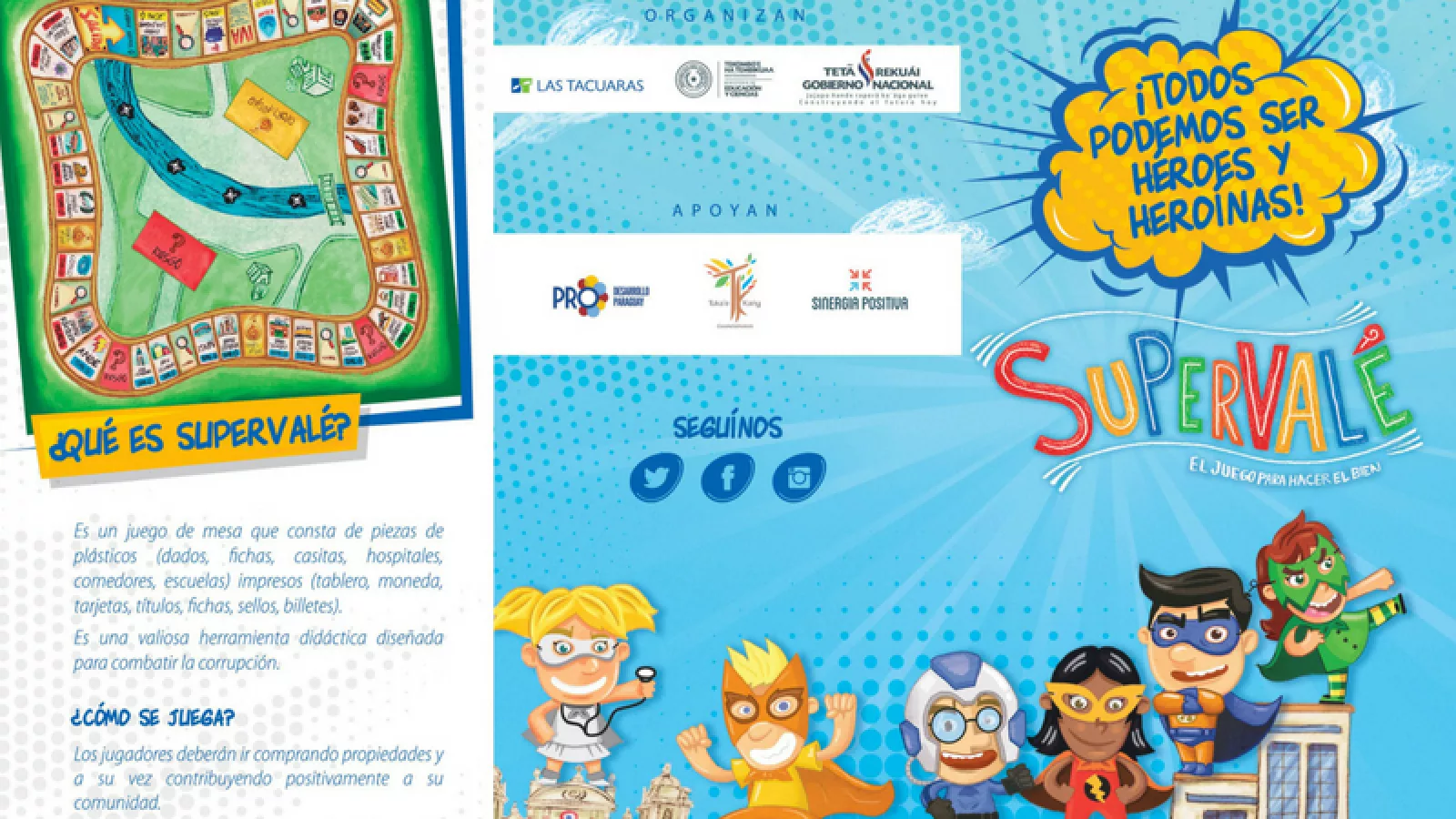 Supervalé es un juego de mesa creado por el departamento de Responsabilidad Social Empresarial del Grupo Las Tacuaras. Latifi, su responsable, nos contó que el juego se creó en el año 2015, tras la necesidad de combatir la corrupción. “Como empresa sentíamos las ganas de hacer algo más para mitigar los hechos de corrupción a nivel nacional y sobre todo el contrabando”. Explicó que eligieron el formato “juego” porque creen que es la mejor forma de hacer que los jóvenes reflexionen sobre la problemática y sus consecuencias.