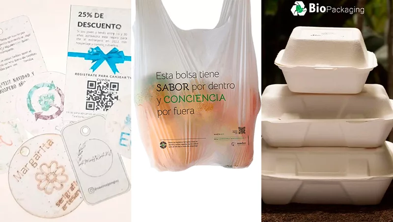 La empresa nacional Dialexport desarrolla vasos, platos, cubiertos, pajitas a partir de desechos alimenticios, específicamente de la mandioca. La materia prima es paraguaya, pero la fabricación se realiza en Chile. Por su parte, Biopackaging, empresa que provee envases compostables para gastronomía y bolsas biodegradables. Una iniciativa que surgió en Argentina y llegó a Paraguay en 2019. Ofrecen bandejas, estuches, cubiertos, ensaladeras y platos de bagazo de caña de azúcar, bolsas de almidón de maíz o mandioca que se biodegradan en tierra, cepillos de dientes de bambú, y servilletas con material recuperado, entre otros artículos.