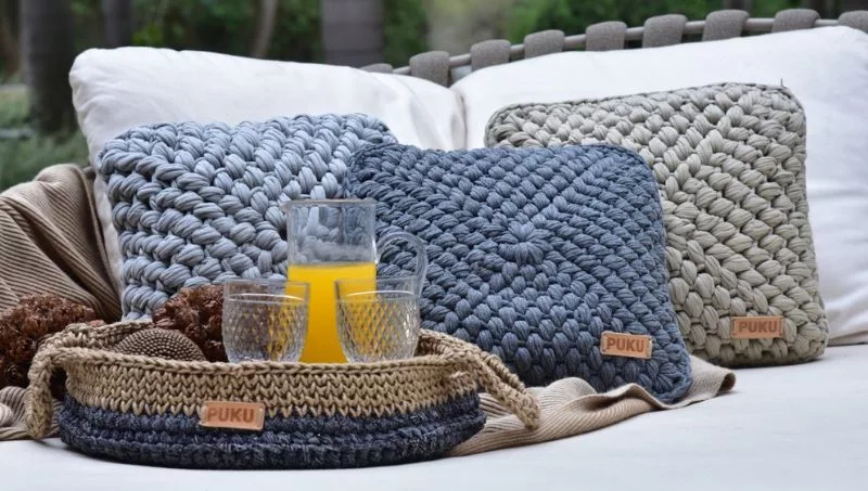 La marca Puku se dedica a la confección y elaboración de productos para el hogar, accesorios y regalos empresariales hechos 100% a mano con residuo textil. La fundación San José recibe aportes de empresas privadas para el crecimiento de este proyecto social y medioambiental.