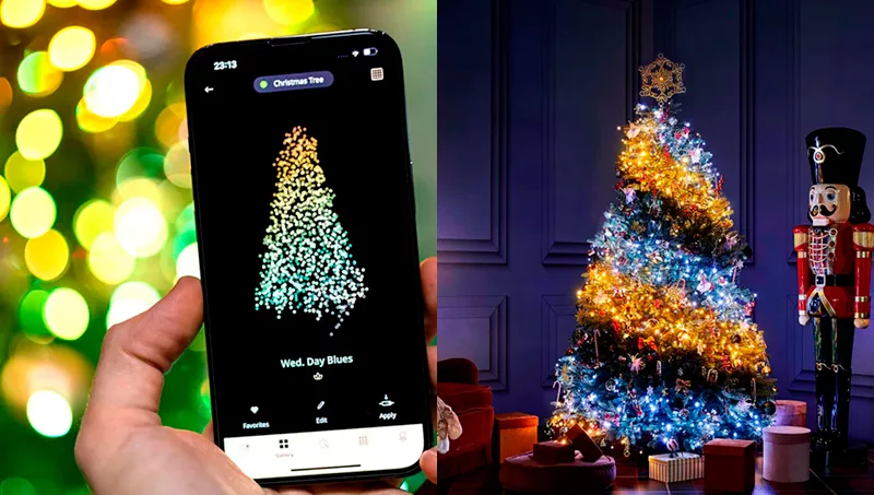De manejar un patrón preestablecido con un botón incorporado en las luces navideñas, ahora es posible crear un patrón personalizado, puesto que ahora hay luces smart, que también son a prueba de agua. Las luces led de la marca Twinkly poseen conexión bluetooth y wifi, y mediante la app de la marca es posible controlar distintos dispositivos, establecer una lista de reproducción automática, encender y apagar las luces, atenuar o aumentar el brillo. También es posible controlar mediante comando de voz, por medio de Alexa, y yendo a lo clásico, trae un control remoto.