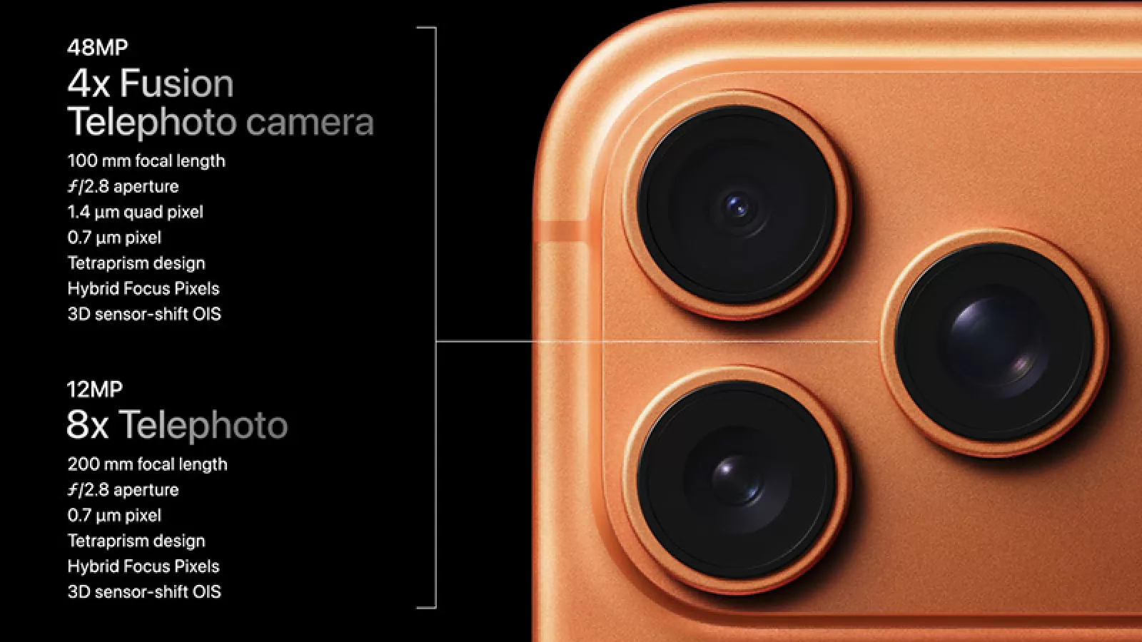El telefoto reduce su zoom óptico a 4x (antes era 5x), pero gana un modo híbrido 8x, que gracias a la alta resolución ofrece resultados cercanos a un teleobjetivo real. A eso se suman la estabilización en el sensor y la posibilidad de grabar en ProRes Raw, un formato profesional pensado para creadores que trabajan con Final Cut o BlackMagic Cam.