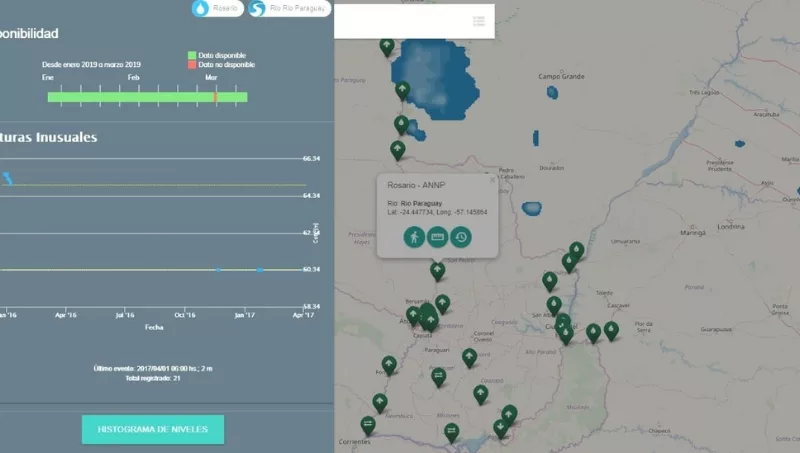 Igualmente, en articulación con el Centro de Tecnología Apropiada de la Universidad Católica (UCA) lograron facilitar en la plataforma el trabajo realizado por sus investigadores, que consistieron en modelos matemáticos de la predicción del comportamiento del río Paraguay, a 12 días, desde Porto Murtinho (Brasil) hasta Pilar (Paraguay).
