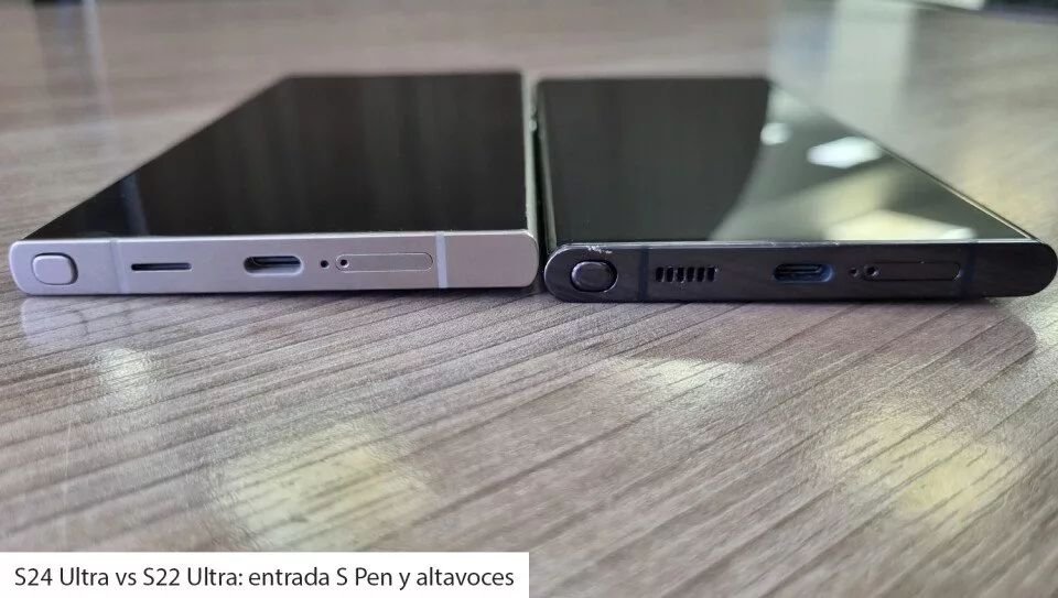 A primera vista, podría parecer que no hay cambios en el diseño, pero sí los hay. Por ejemplo, en el S24 Ultra desaparece la pantalla edge de las versiones anteriores, para volverse plana. También cambió el aspecto de los altavoces y ahora el marco es de titanio y la pantalla incorpora el cristal Corning Gorilla Armor.