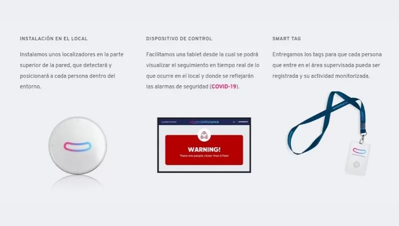 El producto está basado en un sistema Bluetooth capaz de detectar la posición exacta de un alumno en un espacio educativo. La startup realiza una instalación de localizadores en los centros que permiten detectar a cada estudiante, posicionarlo y determinar su “espacio de seguridad” mediante el uso de tags en forma de tarjetas o pequeños wearables. Siempre que la distancia entre usuarios sea menor de 1,5 metros, los dispositivos emiten vibraciones de aviso.