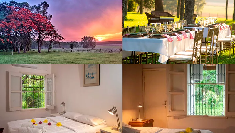 Se trata de un lugar cargado de historia. Según contó Camila, “es una estancia conocida en el departamento, como la más linda de Caazapá y fue un regalo familiar lleno de significado”. La propiedad cuenta con dos casonas amplias que albergan 16 habitaciones cómodas, ideales para parejas, familias o grupos. Las opciones van desde habitaciones dobles hasta familiares, algunas de ellas con capacidad para cinco personas, y todas diseñadas con un toque rústico y detalles cuidadosamente seleccionados, como muebles importados de Europa.