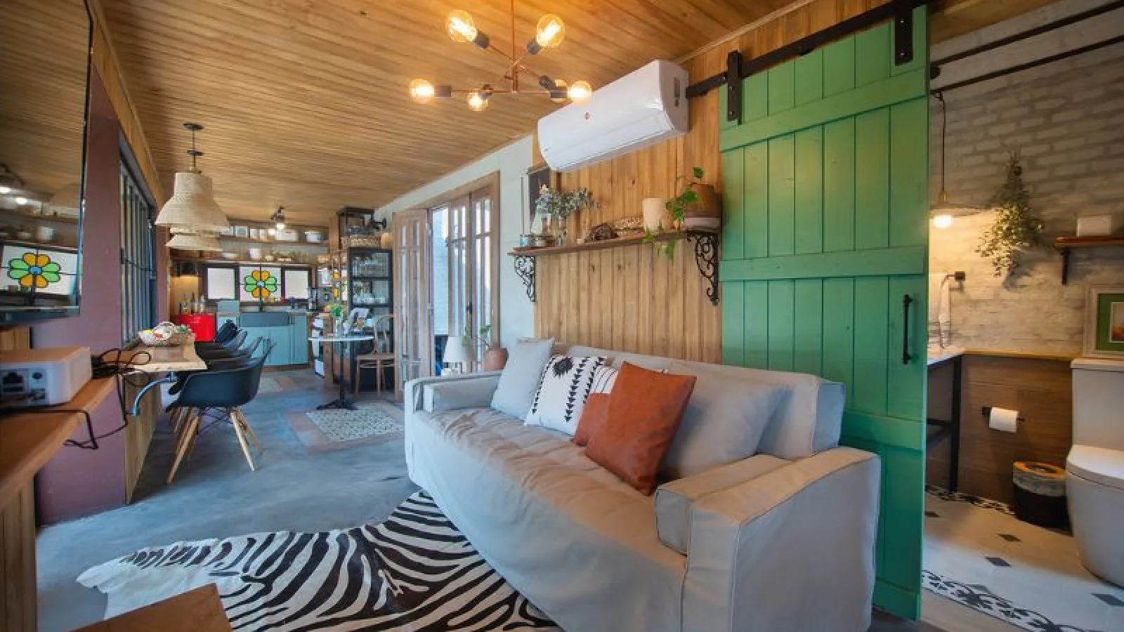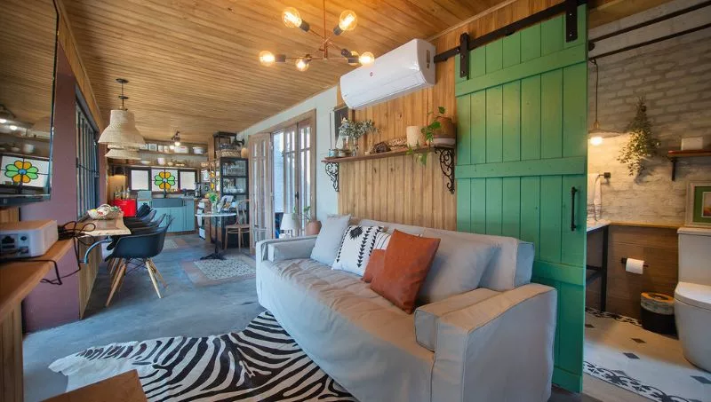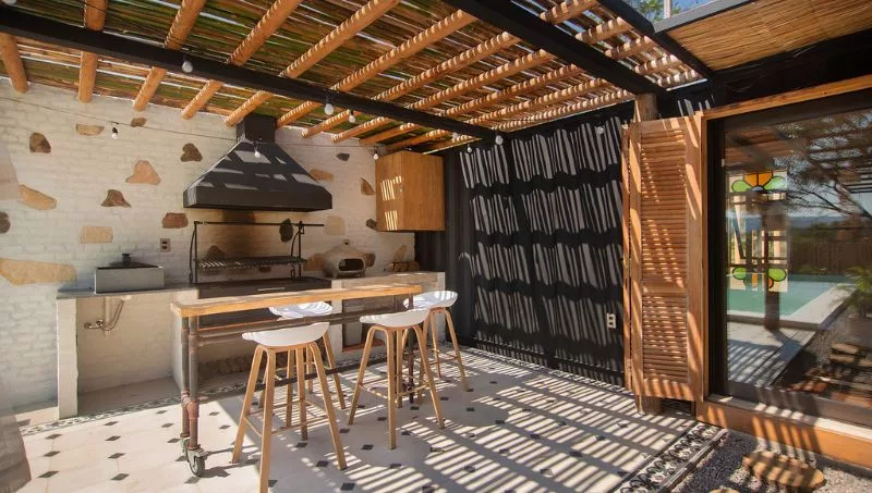 El lugar dispone de un espacio integrado de cocina (totalmente equipada) para que los huéspedes puedan cocinar, ya que en los alrededores no hay servicios de comida, así como un dormitorio con cama matrimonial y un comedor para ocho personas compartido entre el interior y la galería, que cuenta con vistas a la piscina y al cerro, estar con sofá cama y TV, terraza con hidromasaje al aire libre y un baño. “Estos espacios están integrados a una galería y a la piscina, que son de uso exclusivo de los huéspedes”, comentó Viviana.