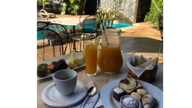 Además, los clientes pueden disfrutar de un jardín que cuenta con un espacio de servicio de desayuno buffet. Y en temporada veraniega los huéspedes pueden hacer uso de la piscina. También tienen Wifi y estacionamiento privado.