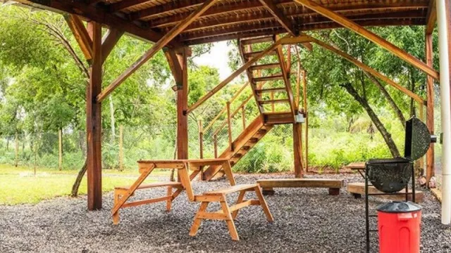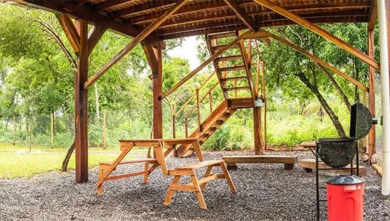 Un ambiente diferente que, −y no muy lejos de la ciudad−, fue la iniciativa de dos socios en una Empresa por Acciones Simplificadas (EAS), que construyeron una confortable y amplia cabaña en un terreno situado entre las ciudades de Tobatí y Caacupé, aproximadamente a 60 km (una hora y media) de Asunción.
