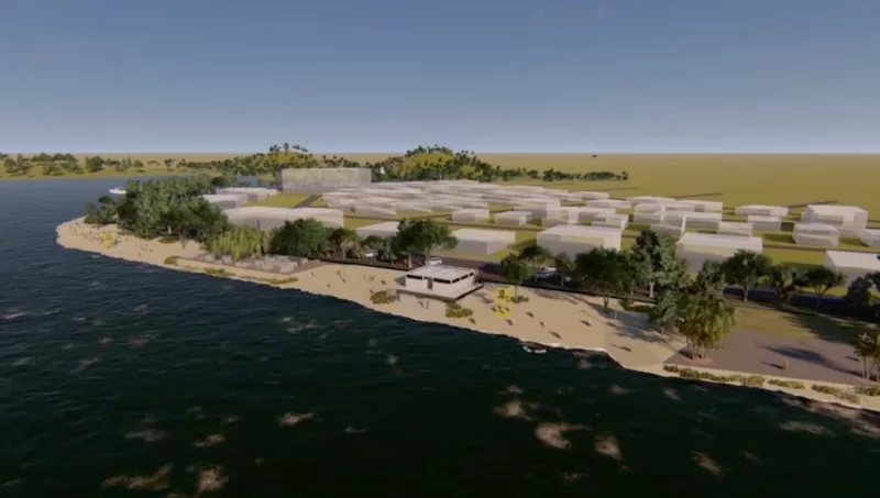 El proyecto consiste en la construcción de una costanera de 1,8 kilómetros, en el km 8, a orillas del Lago Acaray. La idea es construir un espacio recreativo y verde, que contará con 2 kilómetros de playa de arena, ciclovía, canchas de vóley, parque de juegos infantiles, espacios para sentarse, anfiteatro y parque de skate.