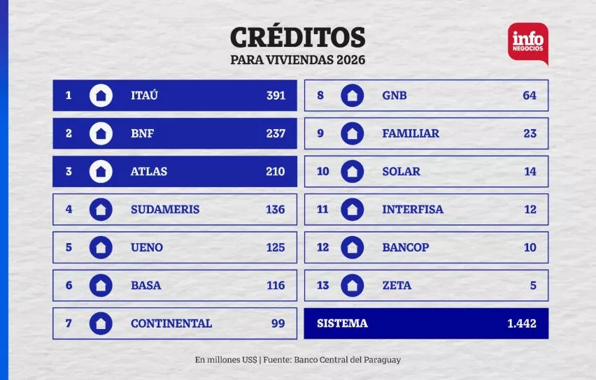 Otra entidad que registró un fuerte crecimiento y una cartera robusta fue el Banco Basa. La institución informó que el financiamiento para la vivienda alcanzó US$ 116 millones, con un aumento del 30%, impulsado principalmente por el segmento de primera vivienda dentro del programa Che Róga Porã.