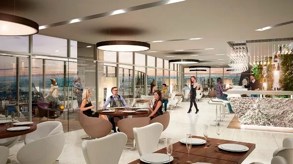 Este complejo será uno de los desarrollos inmobiliarios más importantes de los últimos tiempos, teniendo en cuenta que en sus 35 pisos se situarán 120 habitaciones del Hotel Hilton Garden Inn, 10 pisos de oficinas corporativas, un exclusivo restaurante en el rooftop (a casi 100 metros de altura), 3 salas de cine con capacidad para 200 personas cada una, 2 salones de eventos, estacionamiento propio para 410 vehículos, y lobbies independientes para el acceso al hotel u oficinas corporativas.