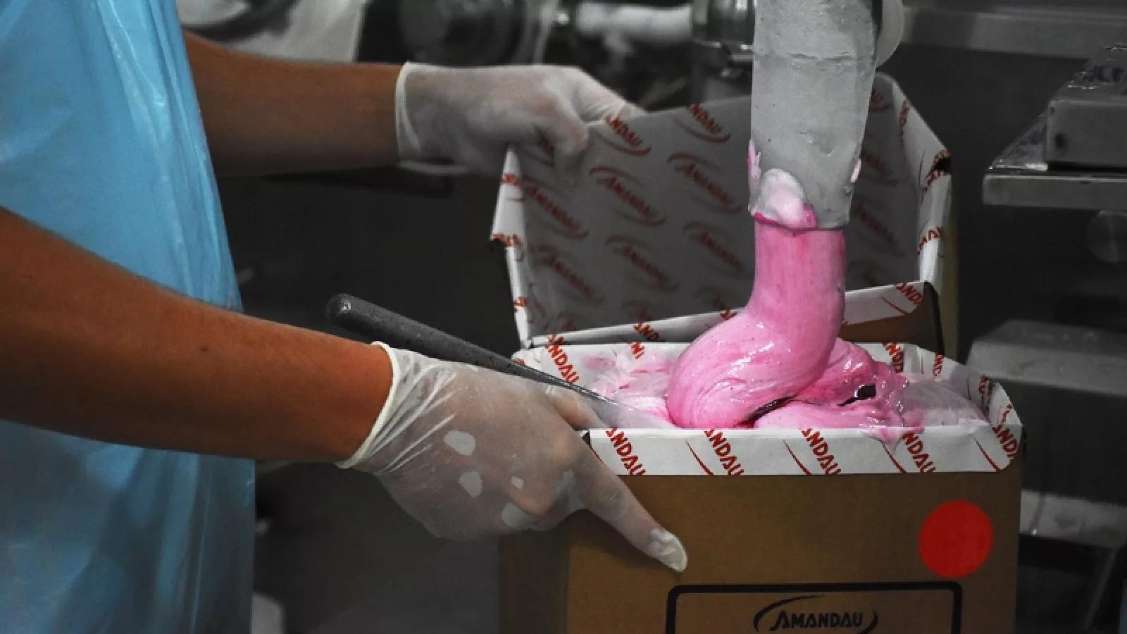 En esta zona, el equipo es de origen italiano como la mayoría de las maquinarias que utiliza Amandau, y con una capacidad de procesar 2.000 litros de base de helado por hora. La máquina HTST se encarga del mezclado, la pasteurización de la mezcla y la homogeneización.