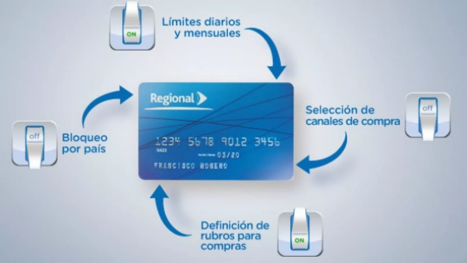 “Establecer límites de compras diarias y mensuales, bloqueo por país, seleccionar canales de compras y definir sus rubros son las nuevas facilidades que tienen disponible todos los clientes con la particularidad de poder asignar estos parámetros en línea, en cualquier momento y lugar desde la Regional Web”, explicó Emiliano Remonato, gerente de marketing de la entidad.