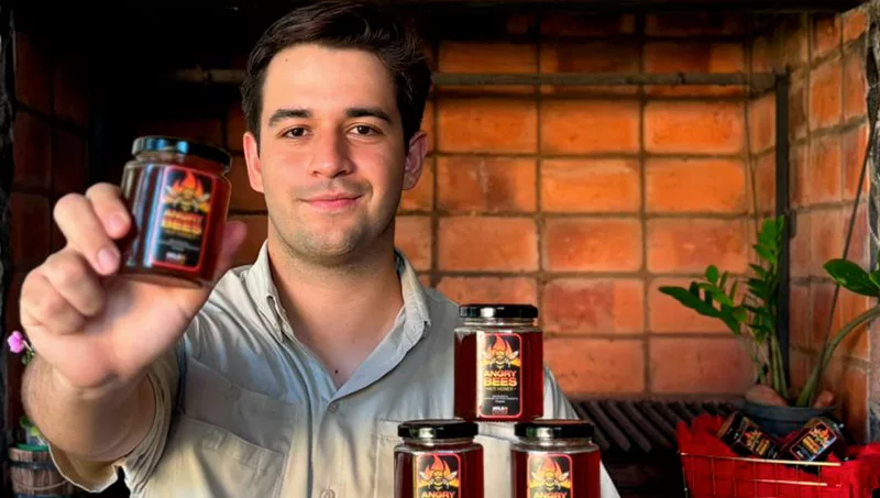 "El emprendimiento empezó el año pasado, teníamos un campo en el Chaco y queríamos innovar. Empecé a estudiar acerca de la producción de miel de abeja, investigando vi que en Estados Unidos las mieles fusionadas con picantes son muy populares. Aquí casi no existe algo así, por lo que decidí experimentar con distintos tipos de chiles hasta dar con la combinación perfecta", comentó Ostertag, propietario de Wild Honey, la marca que produce esta miel multifloral.