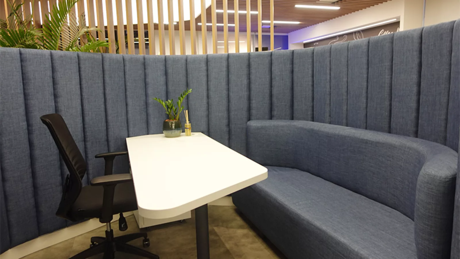 En el interior del centro de experiencias predominan los blancos, azules y la madera; ofrece diferentes variedades de café de calidad, de la mano de un barista, y con una playlist de música funcional creada por una DJ para completar la atmósfera del lugar.