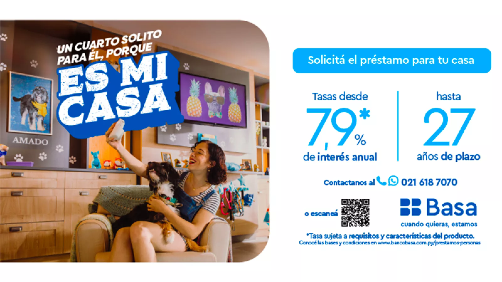 Con el objetivo de acompañar a sus clientes a cumplir este sueño, Basa lanza ES MI CASA, una campaña que se conecta con la gente desde el sentimiento de hacer lo que uno quiere porque al fin ese espacio tan deseado al que llamamos hogar, se hace realidad. La campaña se caracteriza por tener un tono cercano y familiar, donde podemos ver desde un hombre que elige tener una cama de pared a pared para saltar con cinco hijos, hasta una mujer que le hizo una pieza exclusiva en su departamento a su perrito rescatado.