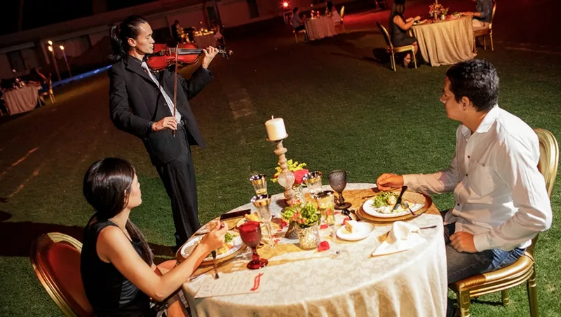 Los enamorados podrán disfrutar de exquisitos platos preparados especialmente para la ocasión. Entre las entradas se encuentra la Causa Limeña y el Volcán de Chipa Guazú con Langostinos al ajo; como platos de fondos Bife de chorizo y morronada de Chipa Guazú con papas reventadas y/o Salmón en salsa Kebabs y legumbres salteadas y finalmente como postre suspiro limeño y/o volcán de chocolate.