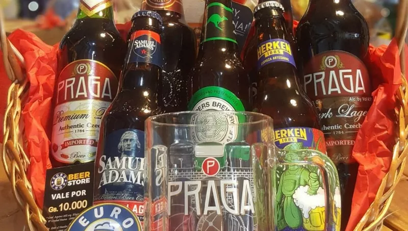 Incluye 1 Canasta Artesanal Paraguaya en forma de corazón, con envoltorio, moño y globito corazón, 1 cerveza checa Praga Pils bot 500cc, 1 cerveza negra Praga Dark bot 500cc, 2 cervezas americanas Samuel Adams Boston Lager, 1 cerveza rusa Baltika 4 Amber Lager, 1 cerveza australiana artesanal Coopers, 1 cerveza paraguaya artesanal Herken, 1 abridor original de Euro Shop Beer Store, 1 Euromanija de Praga, 1 Vale de Consunción por G.10.000. Ideal para los cerveceros ya que incluye varias marcas a un precio de G.150.000.