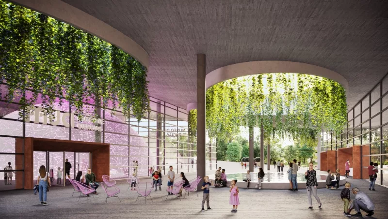 "La misma contará con una huella construida de aproximadamente 6.000 m2, en dos niveles, con un total de 12.000 m2 de área a ser construida", subrayó. Asimismo, el MuCi constará de una terraza verde que funge tanto de espacio verde abierto caminable como techo del museo.