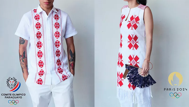 El diseño de los uniformes se centró en el concepto de la "garra guaraní", adaptado como "gala guaraní" para reflejar la fortaleza y el orgullo de los atletas paraguayos. Las prendas incluyeron guayaberas para los hombres y túnicas bordadas para las mujeres, todas elaboradas con técnicas tradicionales de ao po'i y complementadas con accesorios como sombreros tejidos por artesanos de Ñeembucú y abanicos de ñanduti.